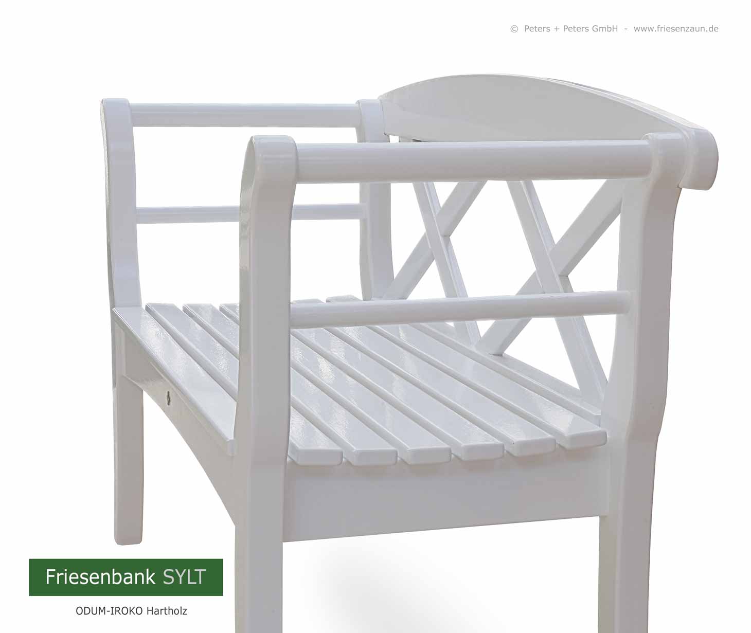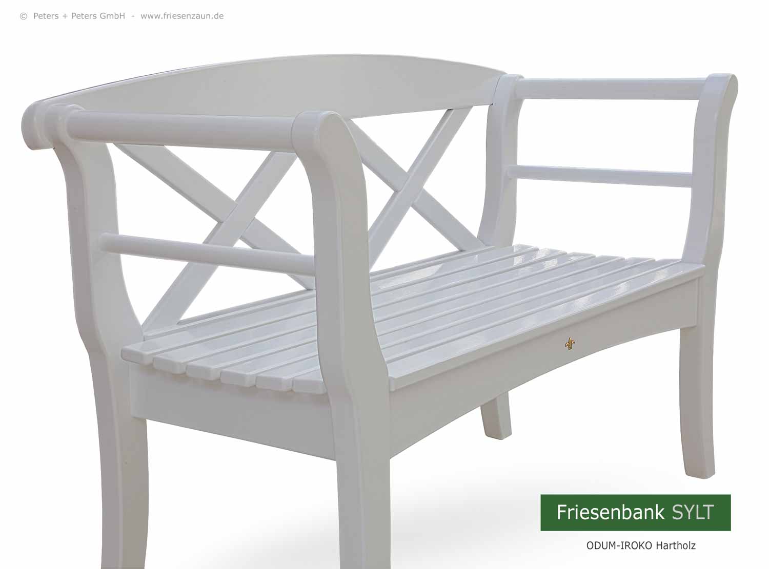 Original Sylter Friesenbank - dauerhaftes ODUM-IROKO Hartholz weiß lackiert