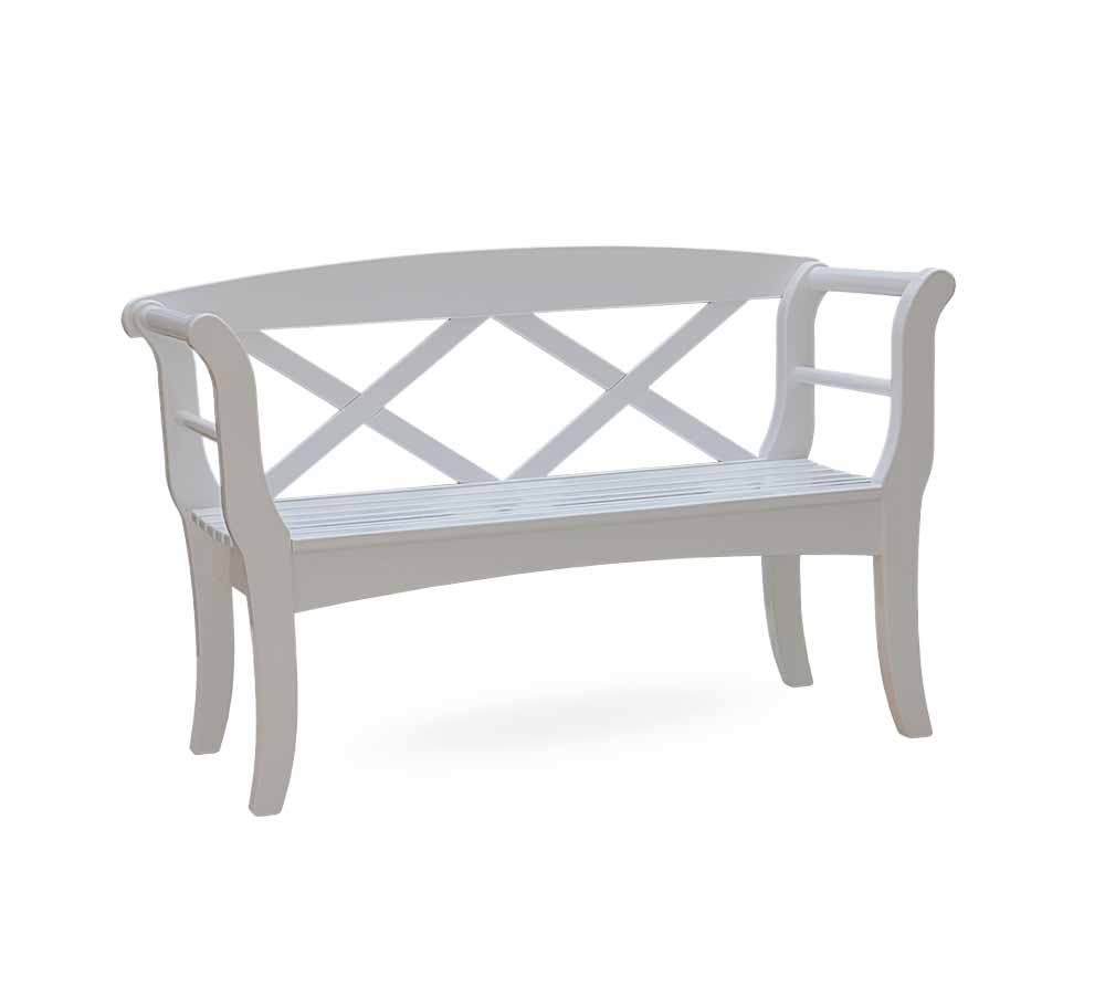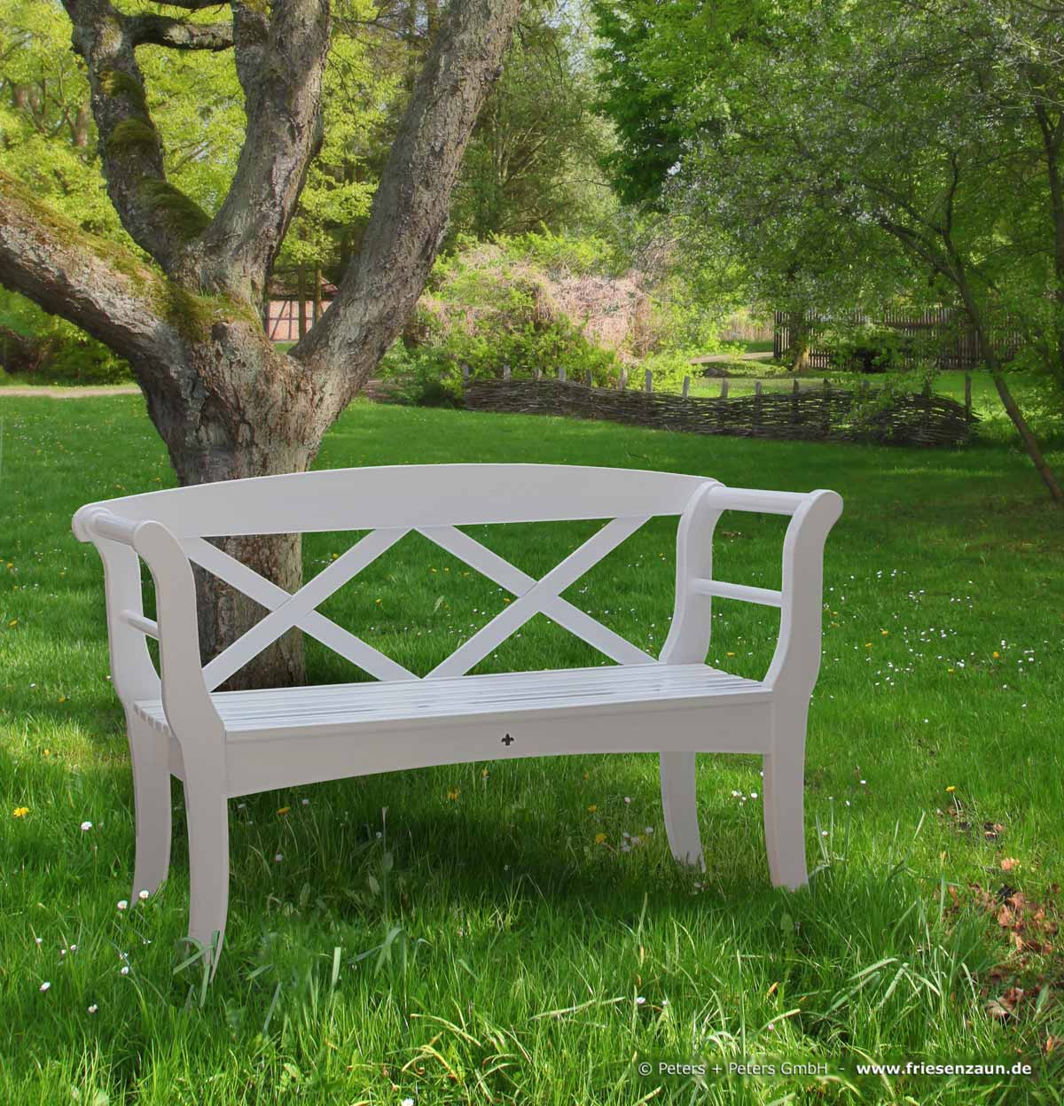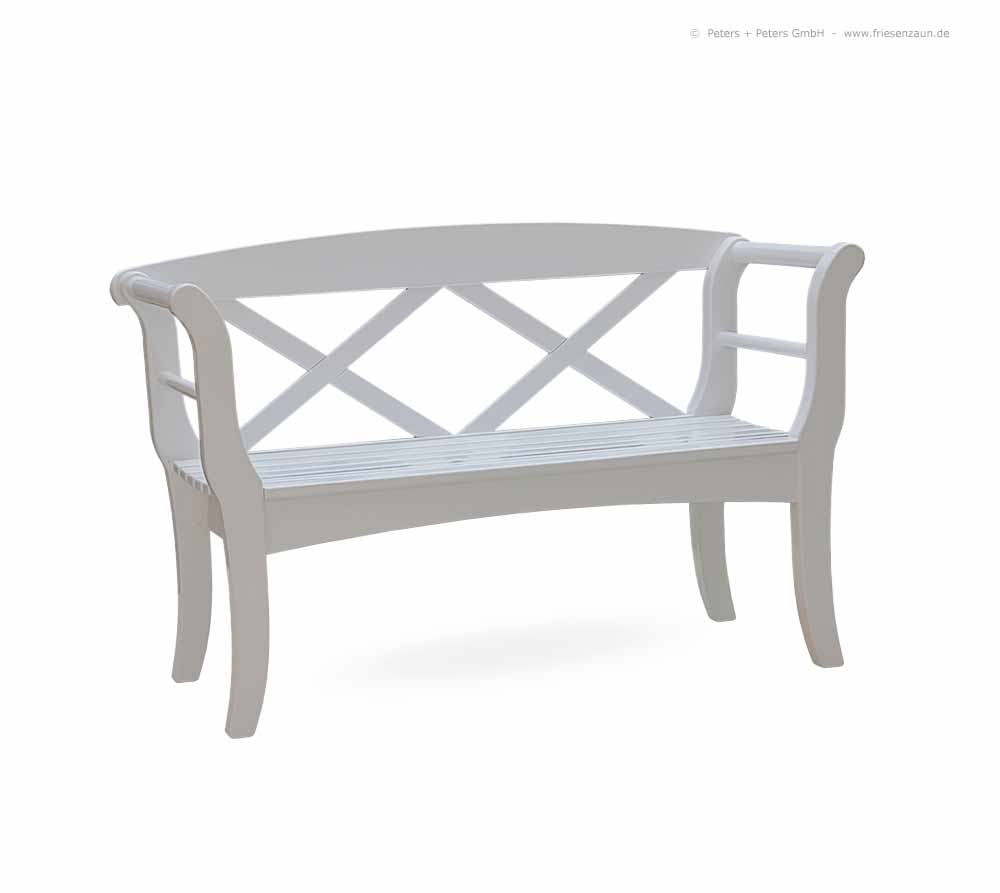 Schöne Sylter Friesenbank - Weiße Holzgartenbank im Friesenstil - lieferbar auch in mehr als 200 alternativen Farben.