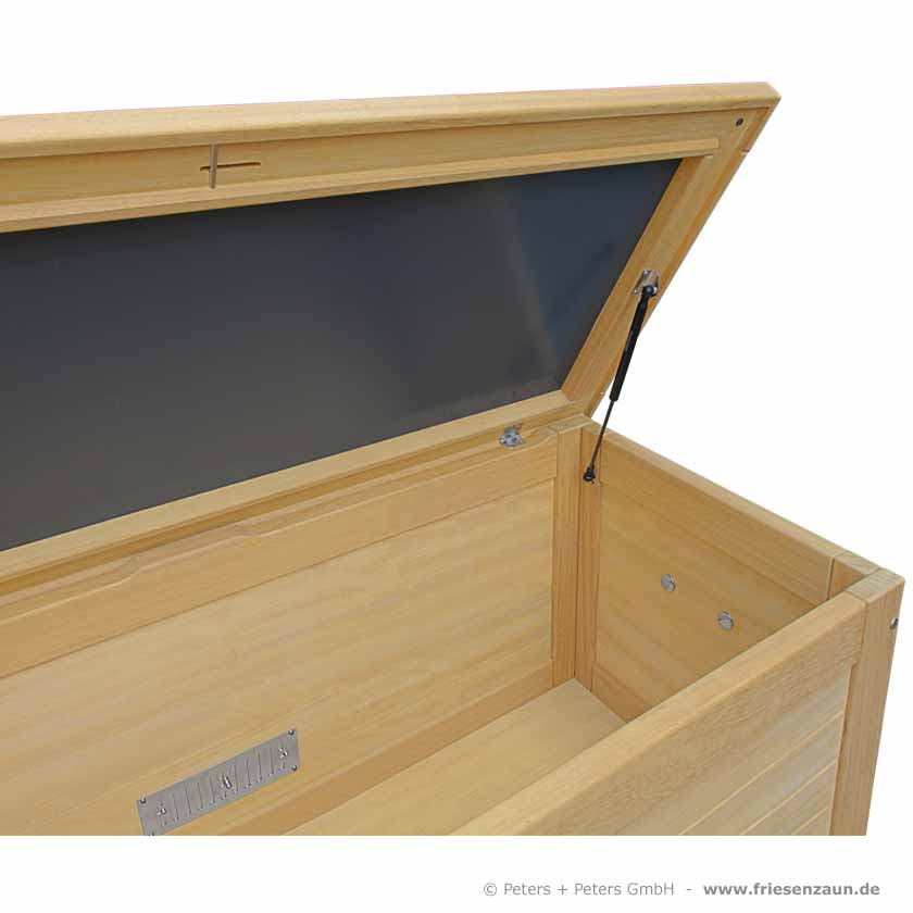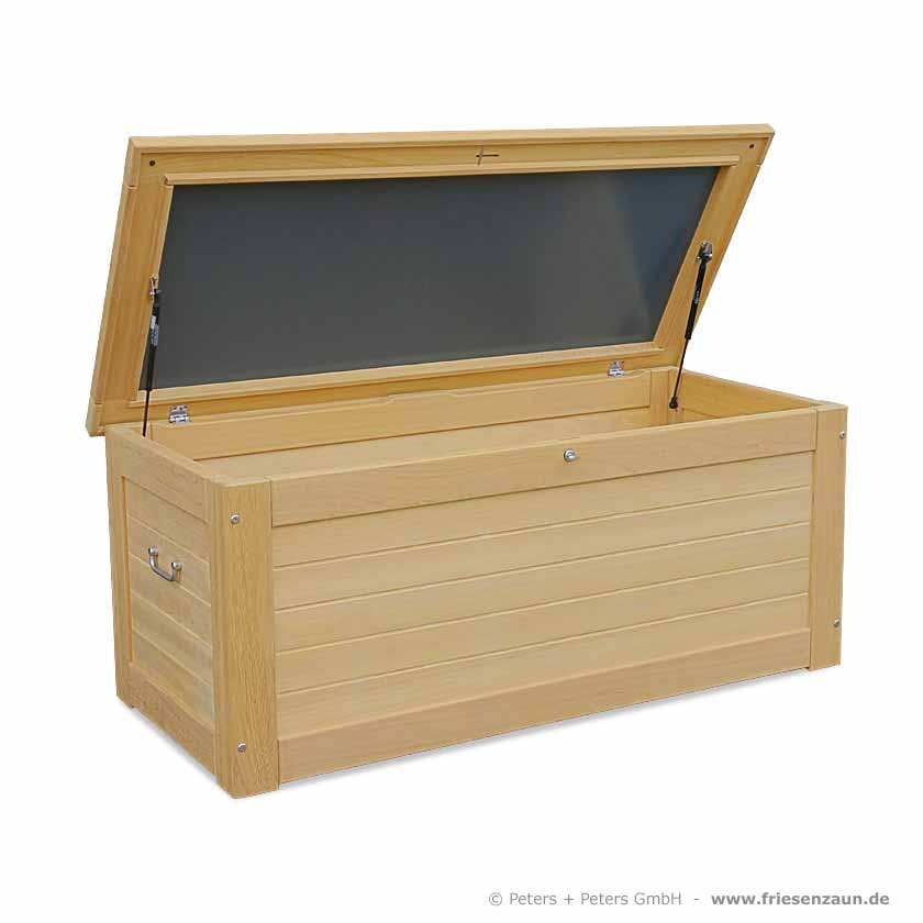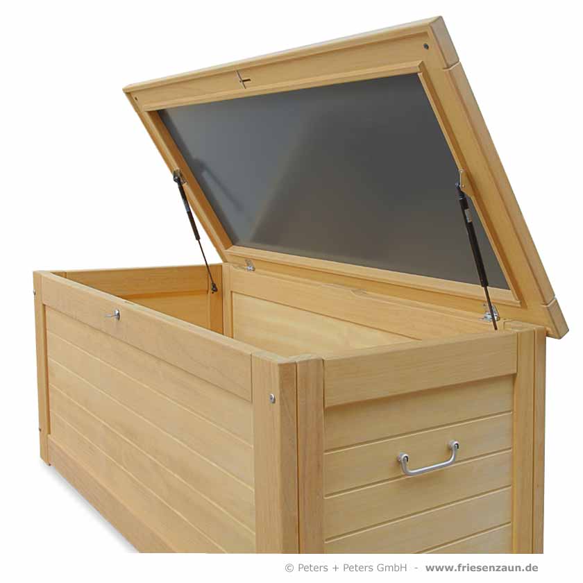 Kissentruhe Hartholz wetterfest lackiert - lieferbar alle RAL-Farben - Edelstahl-Zubehör - Gasdruckfedern - wasserdicht