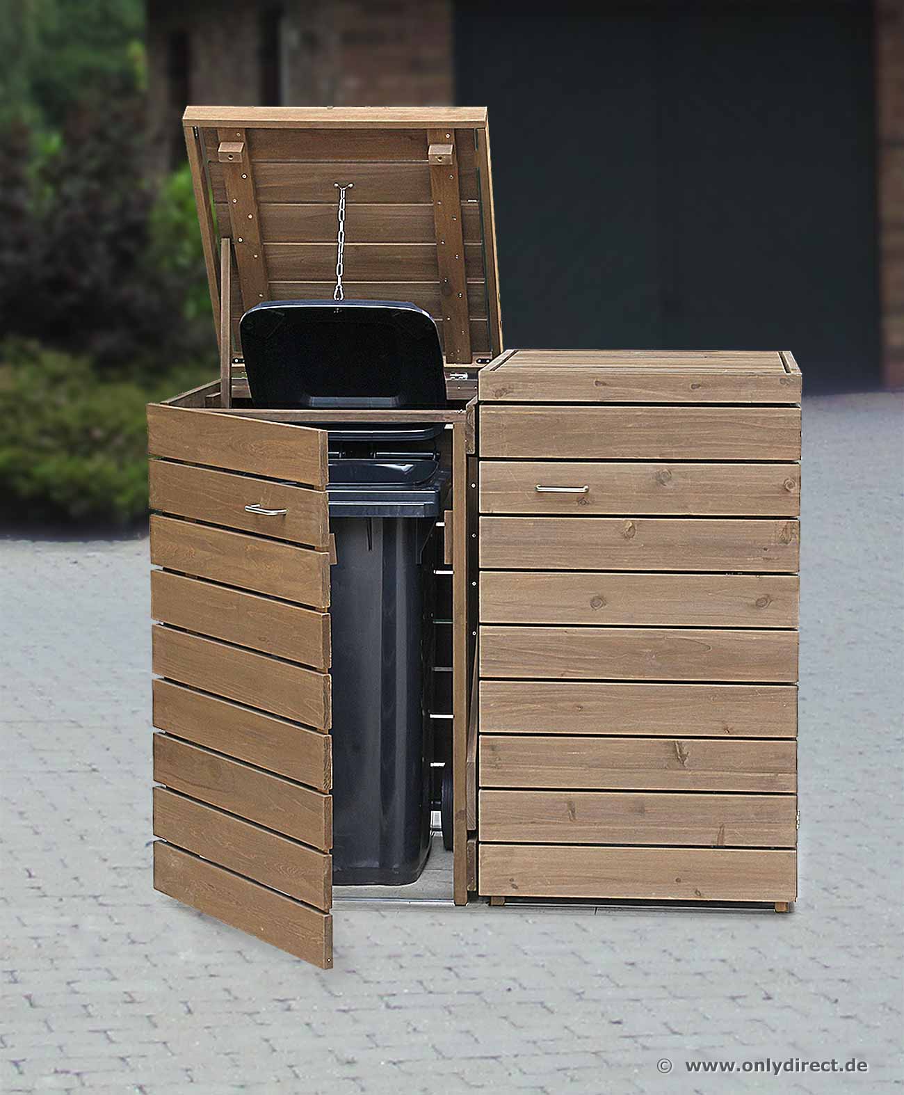 Die Mülltonnenbox PRIMUS ist nicht nur schön, sondern auch besonders stabil. Massive 20 x 105 mm dicke Holzbretter und 28 x 60 mm starke Rahmenteile machen die Mülltonnenbox PRIMUS sehr stabil und robust. Alle Beschläge und Schrauben sind aus rostfreiem Edelstahl gefertigt.