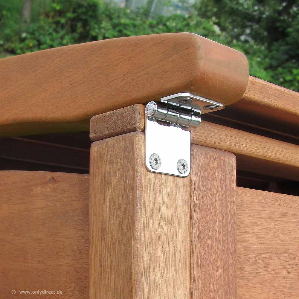 Die Ausführung Natur kann sehr gut mit handelsüblichen Lasuren und Farben farblich gestaltet werden. Unbehandeltes Eukalyptusholz vergraut - wie jedes andere Naturholz auch - durch den UV-Anteil des Sonnenlichtes und bildet im Laufe der Zeit eine wunderschöne, silberfarbene Patina.